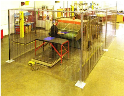 晟科工业帘™定制的固定框架+透明帘,是区分车间工位的一种解决方案,其同时具备隔断和允许快速穿行两种特性,这解决了传统的工位隔断屏风与快速通道的实际用途相悖的难题。