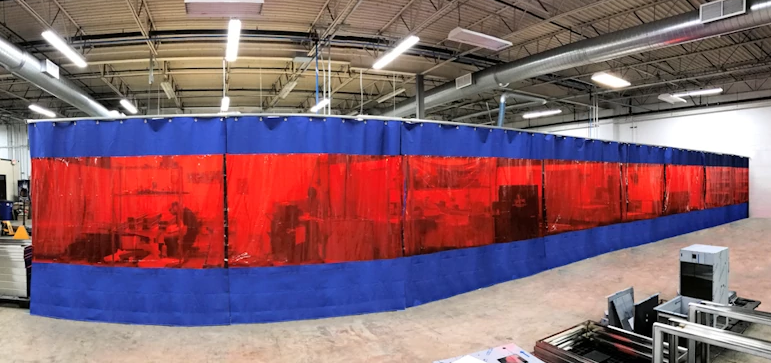 晟科工业帘™定制的焊接防护屏满足相关的焊接安全标准,也符合防弧光及阻燃性能。