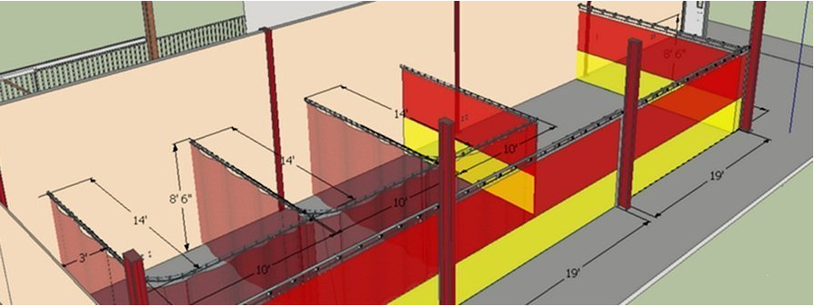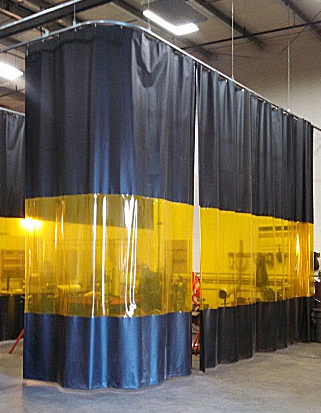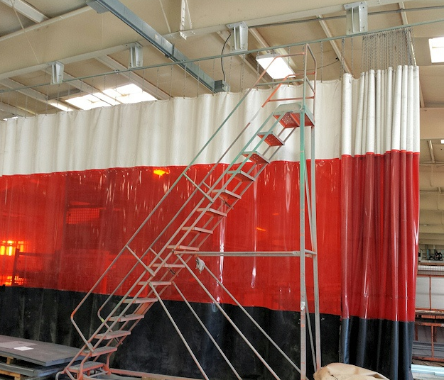 这类焊接防护屏一般用于大型焊接车间的焊接区域隔离划分,晟科工业帘™可以根据您现场的实际布局尺寸,定制出对应的产品,它可以是固定的或者是可推拉滑动的。
