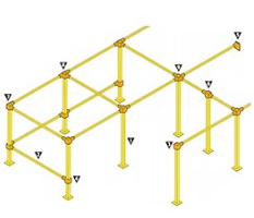 采用固定式的金属立柱(2525~5050方管),以及串联的横梁(2525~5050方管),形成可以固定式的工位结构,一般高度在1.8~2.5米左右。焊接防护帘悬挂于横梁下方。