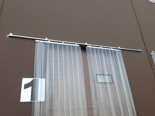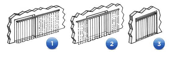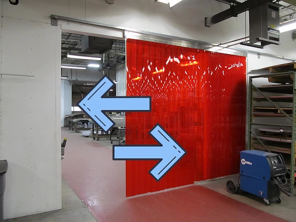 屏风推拉式透明帘有三种开合方式(开合空间:轨道为1:2,比如通行口尺寸为1米,则需要2米的轨道实现单边或双边推拉)